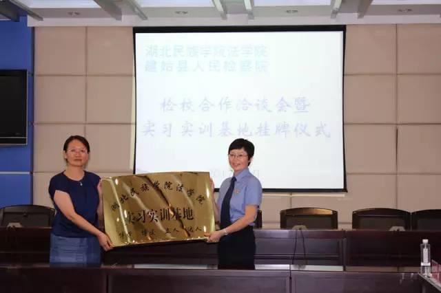 7月5日,湖北民族学院法学院实习实训基地在我院正式挂牌成立。当天,湖北民族学院法学院副院长汪燕一行还与建始县人民检察院各业务部门负责人及部分业务骨干参加了检校合作洽谈工作会议。